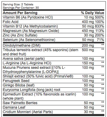 The reason why we say this is that fact that the largest ingredient by amount per serving is Tribulus Terrestris, now this is a proven libido booster, but as a testosterone booster it has FAILED in every single clinical trial to have any direct effect on testosterone production.. quite frankly it does not work…
